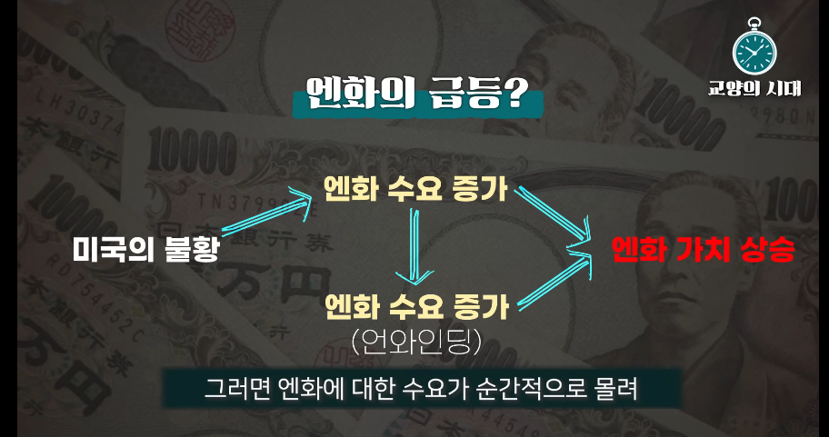 - 그러나 엔화 가치가 상승하게 되면 환전 비용 상승으로 캐리 트레이드 투자자들은 손실이 발생할 위험(미국채 등에 투자한 것을 빨리 처분하고 엔화를 갚는(수요) - 언와인딩)이 컸습니다. 이에 해지 펀드들은 엔화 강세를 예상하고 대규모로 엔화를 매수하며 레버리지를 동원해 베팅했습니다.