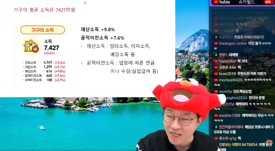 가구의 평균 소득은 7,427만 원(+3.4%), ※ 중위 5,800만 원.