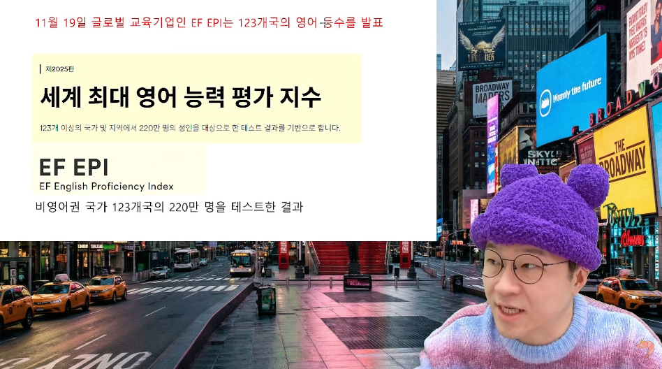 11월 19일 글로벌 교육기업인 EF EPI는 123개국(비영어권)의 영어, 등수를 발표.