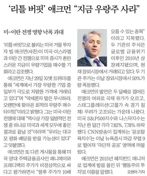 리틀 버핏 빌 애크먼 '지금 우량주 사라!'