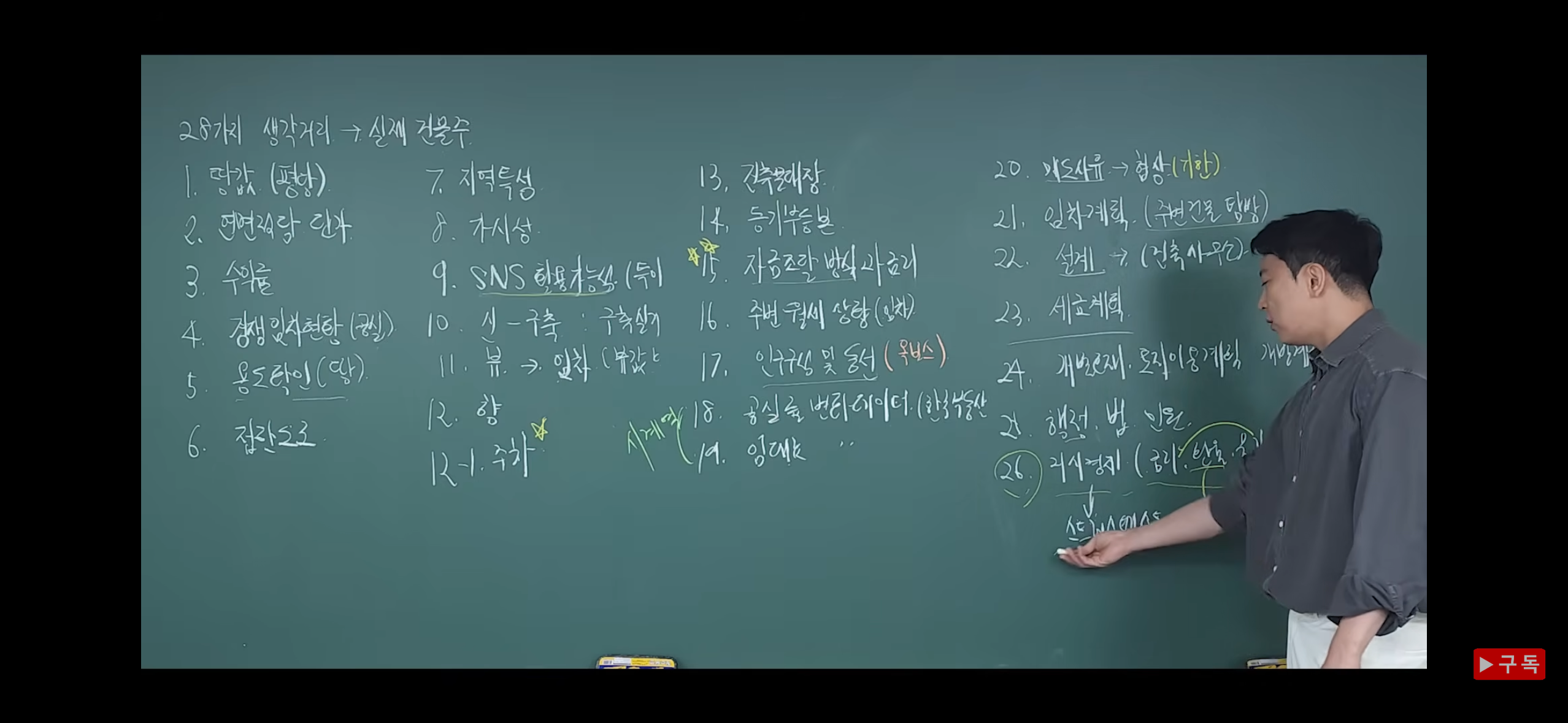아래는 영상에서 제시된 28가지(주차 포함)를 순서대로 나열한 것으로, 각 항목에 간단한 설명을 붙였습니다.